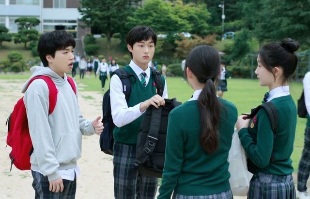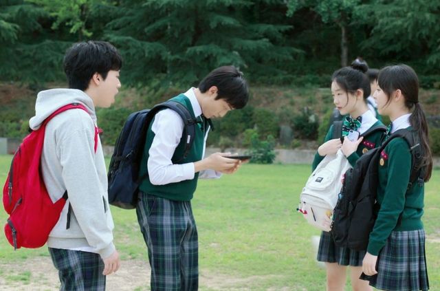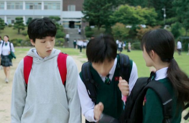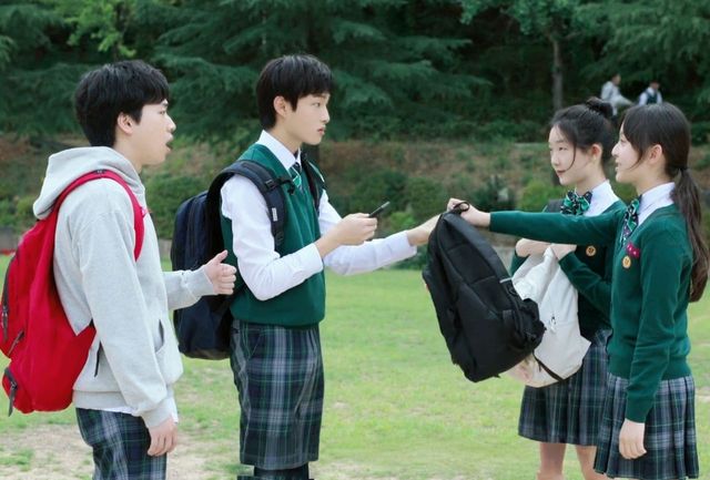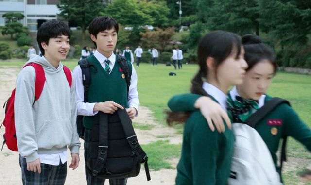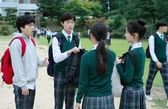 李朔轻轻揽过温召与温暖的肩膀,步伐沉稳地转身离去,以免这只小白兔再被同学“欺负”。