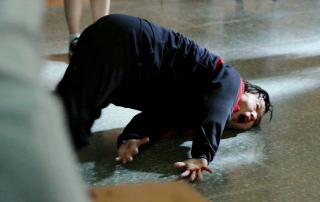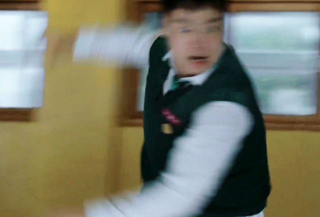 体育老师变成丧尸后,一直追着秀赫不放,秀赫卯足了力气一拳朝他的面部打过去。