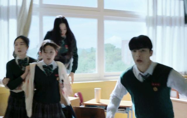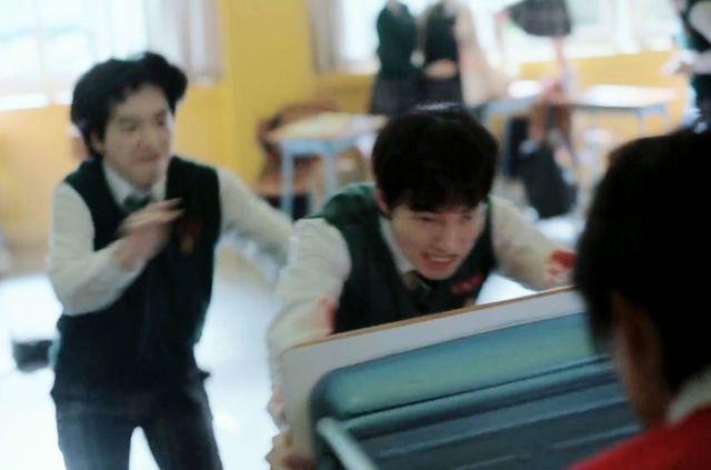 娜延看准时机,朝着大门口跑了过去,她迅速反应过来,现在大家不能再在教室里待着了,于是赶忙把堵在门口的桌子挪开。