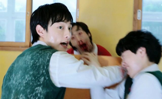 大家都会死,于是他毫不犹豫的上前,去帮助青山,两人合力,这才将体育老师抵在墙上,但即使是这样,也没能完全控制住他。