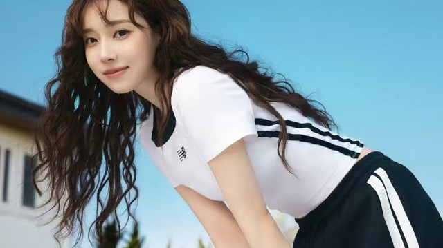 在湛蓝天空的映衬下,宋听魚宛如一道灵动的风景。白色短袖上衣轻贴着身躯,黑色的领口与袖口恰似巧妙的点缀,袖口上的三条黑纹透着动感气息。黑色运动裤流畅地垂落,两侧白条纹一路延伸,呼应着上衣的韵味。
