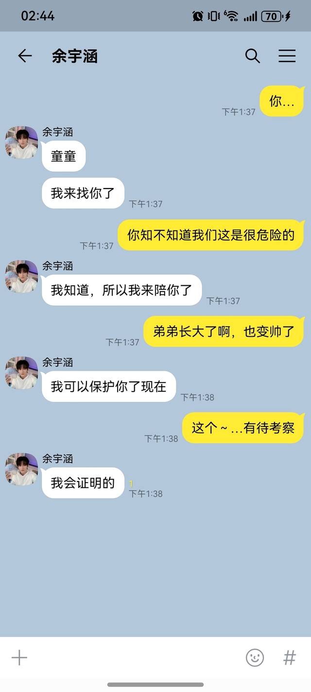 【而童禹坤和余宇涵已经结束了他们的话题】
