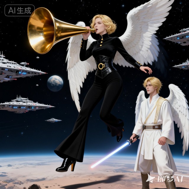 此时,已达到圣弓手传说中"弓皇"境界的瓦丽娅,再度威风凛凛地出现在神圣冲击舰队面前。她手中握着一柄自制的、大得夸张的金色喇叭,对着敌方战舰扬声喊道: