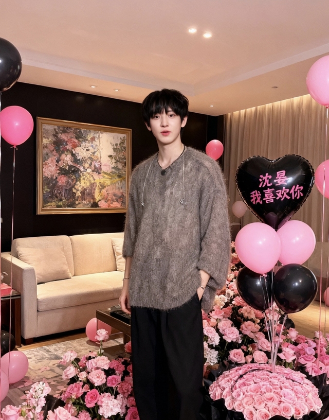 我站在门口愣了足足有半分钟,下意识地往里走,雪地靴踩在铺了地毯的地板上,没发出一点声响,直到走到房间中央,才看清站在气球堆里的朴灿烈