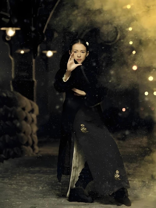 你跳的是带操,彩带设计成黑红白三色渐变款,根部的黑色像是你身体的延伸,中部的红色是中国红,也代表中国女性坚韧自强的性格底色,尾部的白色则是对电影里宫二雪地报仇打斗戏的致敬。