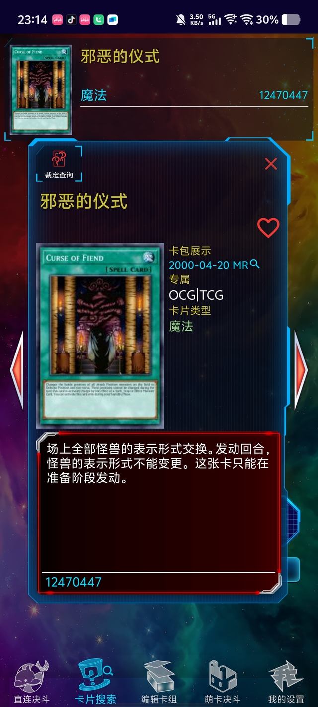 基斯·霍华德魔法卡,邪恶的仪式,变更场上所有怪兽的表示形式,这个回合对手不能将怪兽的表示形式变更,此卡只能在准备阶段使用。