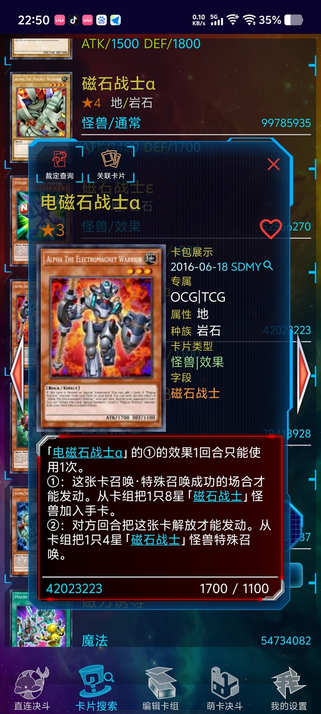 暗游戏怪兽效果发动,将一张八星磁石战士加入手卡。