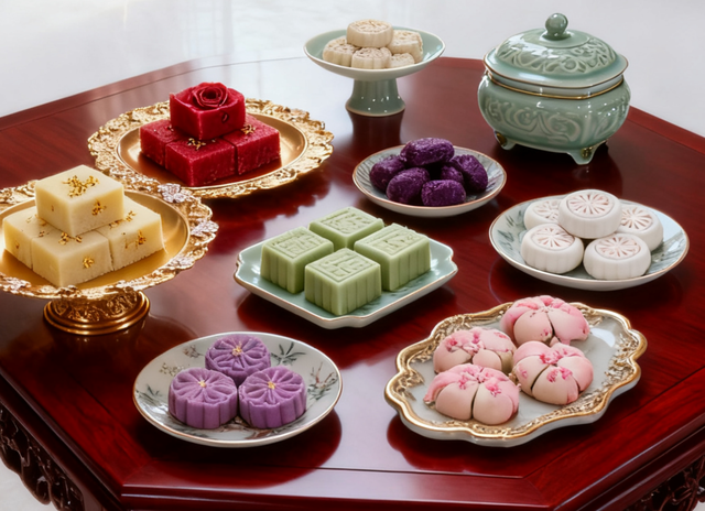 白玉璃凝视着满桌精致的糕点,甜香的气息在空气中悠悠飘散,撩拨着她的味蕾。她忍不住迈步至矮红木桌前,轻轻跪坐在榻榻米上。左手拈起一块糕点,右手又取了一块,迫不及待地送入口中。细腻的口感在舌尖蔓延开来,浓郁的甜香瞬间充斥了整个口腔,美味得让她几乎沉醉。