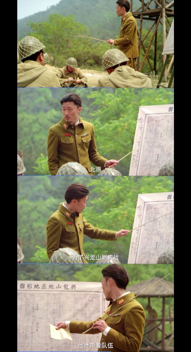 北原浩行正在为了兴龙山剿灭战带着队伍们熟悉地形,随意找了一根细棍不时地在地图上移动讲解。