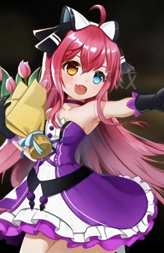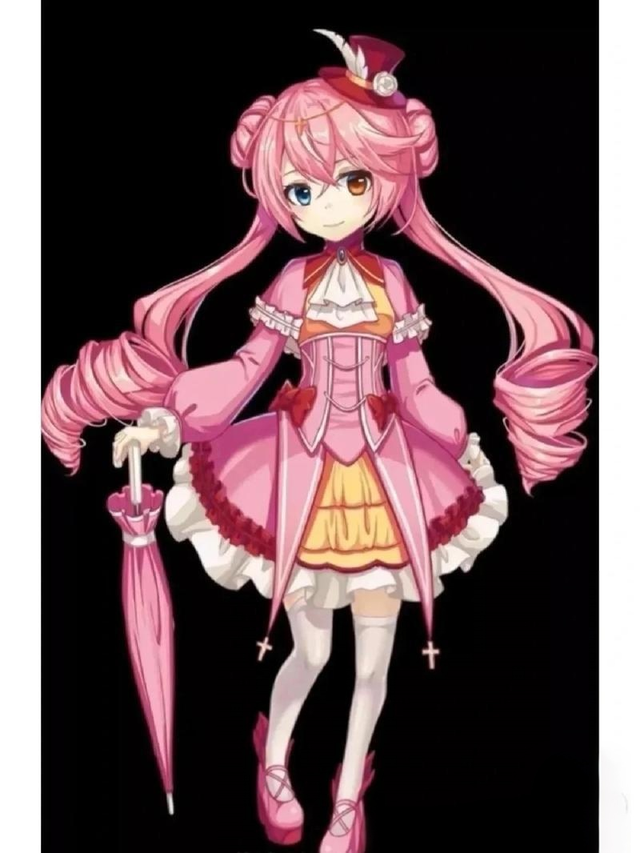 样貌:粉色头发,扎成两个马尾,头发下摆部分类似于螺旋状。头上一顶粉色小礼帽,上面插了根羽毛和一朵白玫瑰。衣服领口是颗蓝色宝,腰间是收紧部分,两边两个红色的蝴蝶结。白色丝袜,鞋子两边羽毛翅膀一样。鞋子是厚低高跟鞋,眼睛是一蓝一橙黄色(还有其他的样子,新出的冰原之秀真的很好看!)