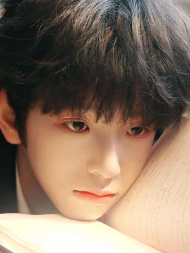 他戴着一副金丝边眼镜,神情专注地看着书。眉眼精致,气质干净,像个易碎的瓷娃娃。