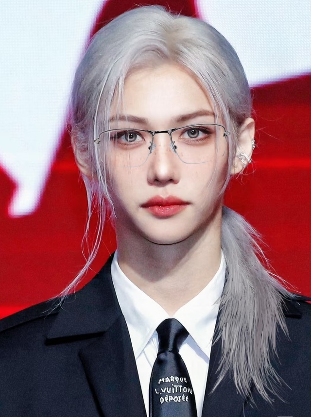银灰色长发松松束成低马尾,几缕碎发垂在耳畔,细框眼镜架在高挺鼻梁上,衬得那双眼睛清透又有一丝漫不经心的疏离。