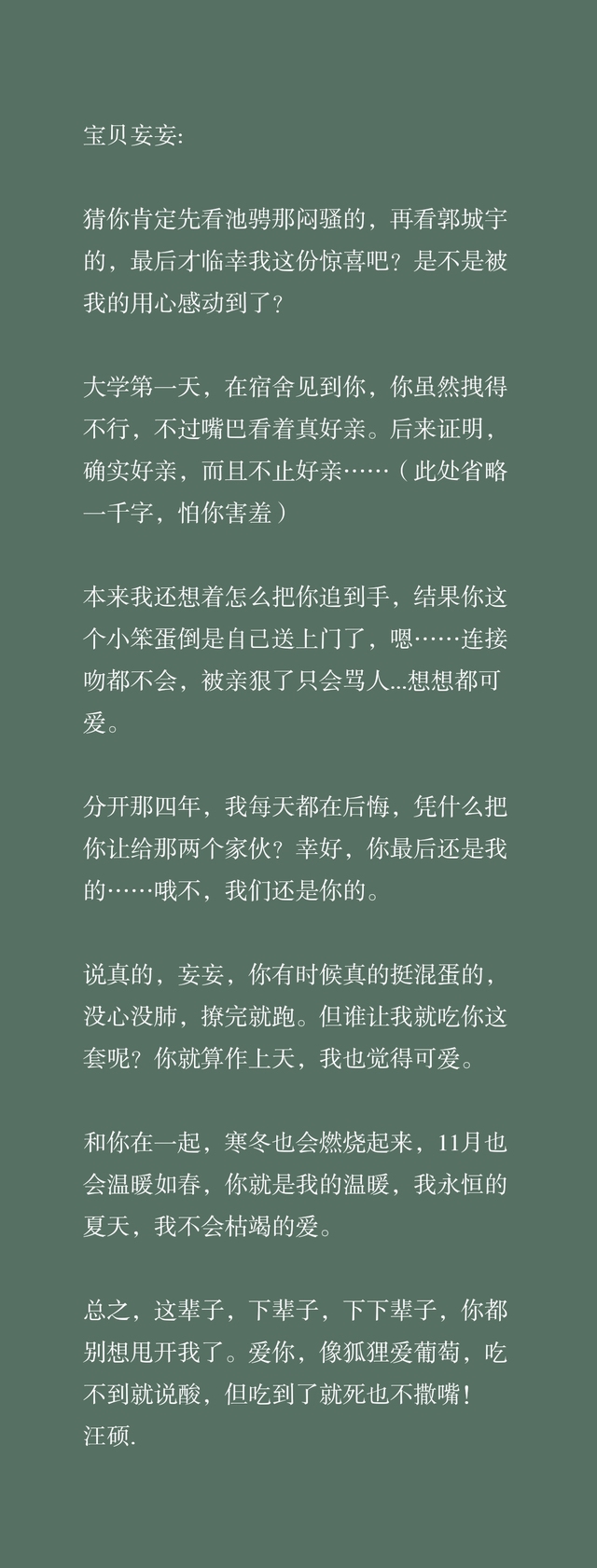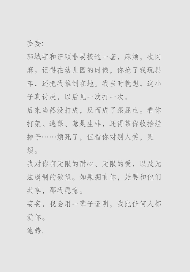 猜你肯定先看池骋那闷骚的,再看郭城宇的,最后才临幸我这份惊喜吧?是不是被我的用心感动到了?