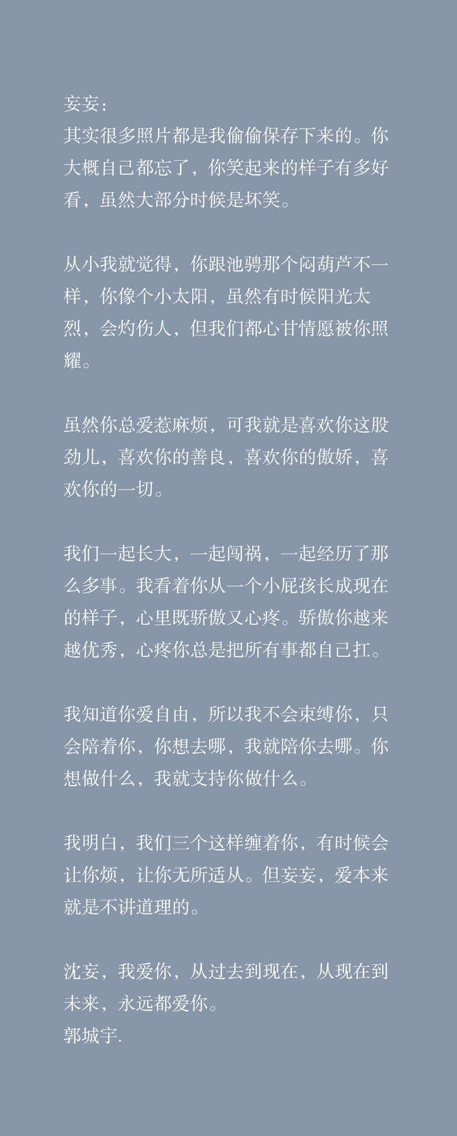 我明白,我们三个这样缠着你,有时候会让你烦,让你无所适从。但妄妄,爱本来就是不讲道理的。