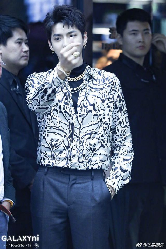 吴亦凡光洁的脸上透这棱角分明的冷峻,有种不怒自威的气场,说话喉结上下蠕动时雄性荷尔蒙爆棚