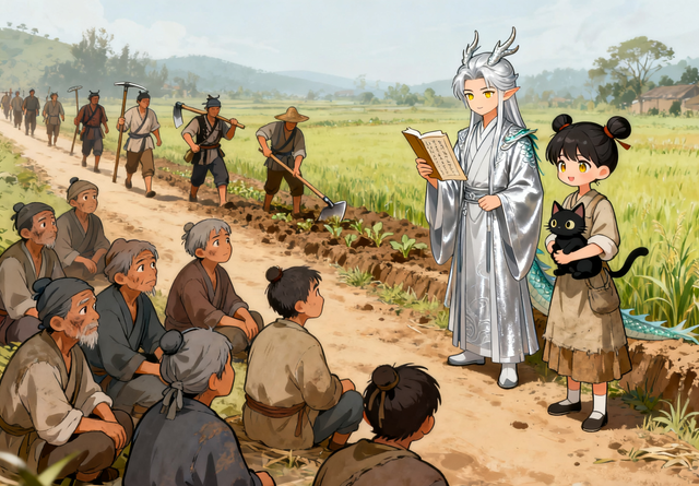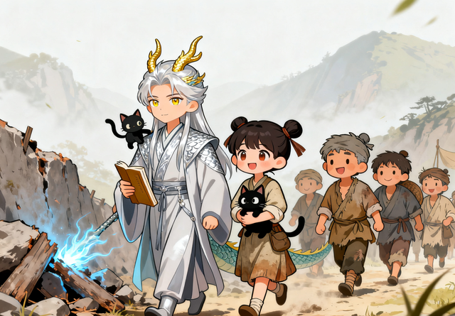 接下来的日子,敖辰成了逃荒队伍的“守护神”——他用龙力帮大家开辟道路,用灵气催生灵田的庄稼,还帮玄渊处理一些“超自然”的麻烦,比如赶走山里的精怪(道家“和”,不伤害精怪,只是让它们远离人类)。