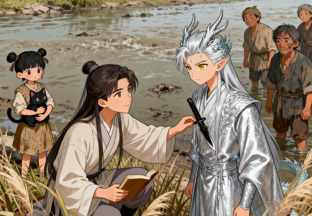 玄渊笑了,这龙太子还挺傲娇。他想起逃荒队伍里的人还没水喝,就说:“那你现在帮我个忙吧——把这条河的水变得干净点,我的同伴们还没水喝。”
