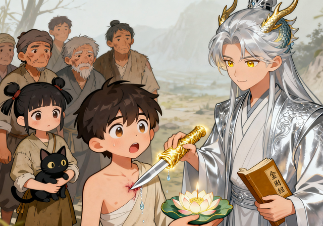 少年皱了皱眉,龙族天生高傲,从不轻易接受人类的帮助。但他胸口的伤口越来越疼,那把匕首上有“灭龙咒”,是他的弟弟为了争夺太子之位,派人暗算他时用的,普通的药根本没用。