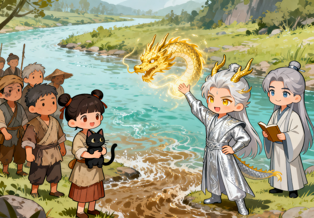 敖辰愣了一下,没想到玄渊会让他做这么“简单”的事。他站起来,走到河边,抬手一挥,金色的龙力注入河里——浑浊的河水瞬间变得清澈,腥味也消失了,还带着淡淡的灵气。