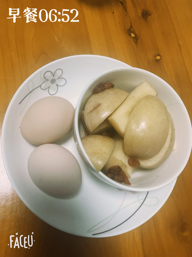 早餐06:52一碗枸杞蒸苹果,俩个水煮蛋