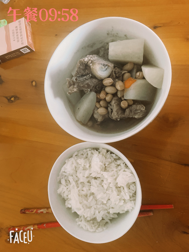午餐:09:58一碗米饭,半大碗花生萝卜炖排骨