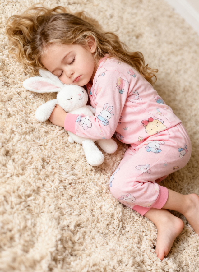 阳光微微透过窗帘照在了床上的两个鼓包上,那小小的鼓包动了动,小人儿摇摇晃晃的跪坐起来。被子滑落,露出一张睡的迷迷糊糊的小脸,小人儿似醒非醒的,看情况视乎是要起床了,小孩搂着兔子慢慢的爬到了床边,像是要下去,只是小孩还没有睡醒,小手还搂着兔子,一只手抓着被子,一只小脚已经踩着地面了,只是另一只脚被被子拌了一下,手还没抓紧,小孩便一屁股往地面跌下去,还好是因为家里有了孩子给铺上了厚厚的地毯,不然可真给孩子摔个好歹出来,小孩儿或许是没摔痛,趴在地毯上半天没回过神,就这样趴着趴着竟然睡了过去……………………
