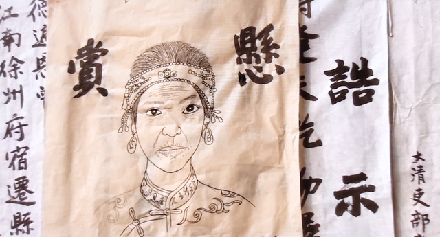 紫薇和金锁扶着紫媛,缓步穿行于市集之中,眼前是熙熙攘攘的人间烟火。墙上的告示引起了她们的注意,而当金锁的目光扫过一张画像时,不由得一愣,抬手指着那张画说道