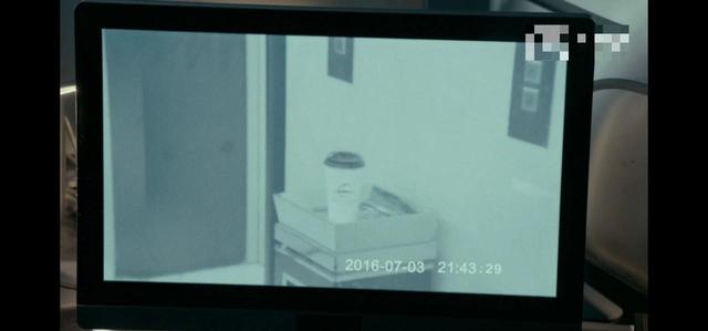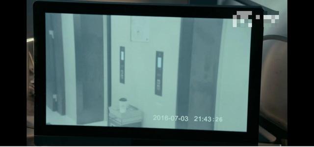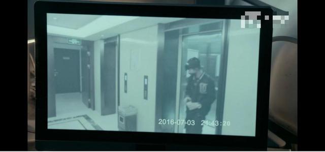 监控器里A从电梯里走了出来手里拿着什么,放在了电梯门口的垃圾桶上