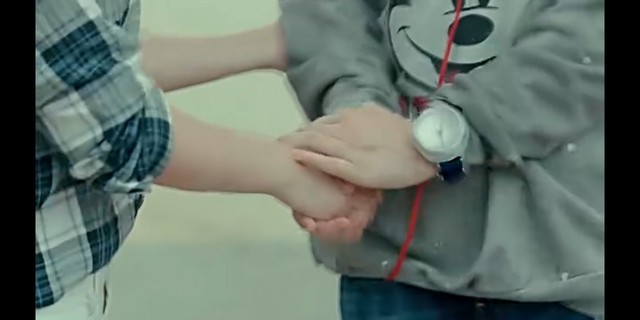站了起来却忘记了放开男孩的手