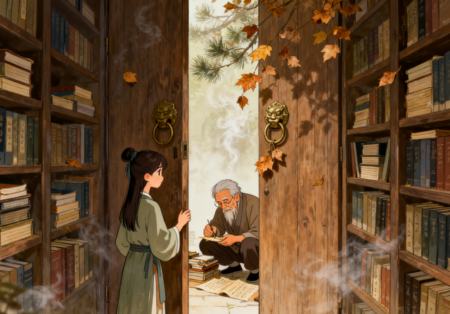 藏书阁的门是虚掩的,铜环上还挂着半片干枯的槐树叶,是昨夜风刮进来的。苏棠推开门时,木轴“吱呀”响了一声,在静得能听见尘埃落地的阁里,显得格外突兀。迎面扑来的是陈年的松香,混着墨汁的涩,还有点虫蛀过的微甜,像谁把半个春天的秘密都藏在了书架后面。