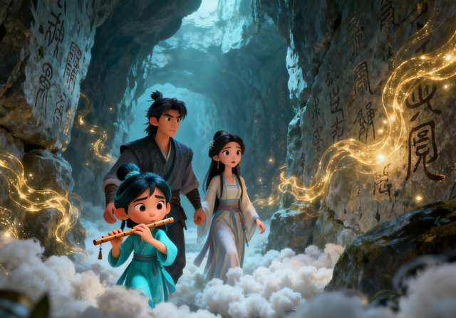 引魂道内,淡金色的魂气如丝如缕,缠绕在石壁间。壁上刻满了万年前的古篆,字迹斑驳,有的被岁月磨成浅痕,有的却在魂气映照下泛着微光,像沉睡的古仙在低声诉说。辰风扶着阿娆走在中间,青瑶持木笛走在前方探路,笛音轻扬,将周遭躁动的魂气安抚得温顺如棉。