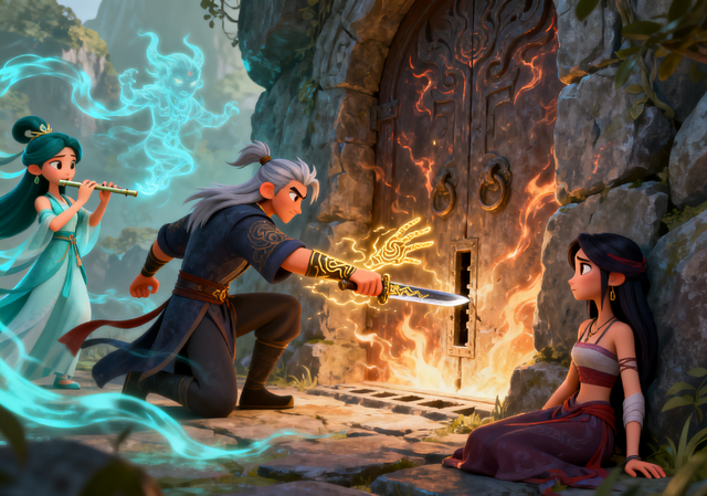 阿娆猛地抬头:“青铜剑?是俺爹的剑!他说那是祖传的,能护青丘平安,原来还有这用处!”她又喜又忧,喜的是有了开门的法子,忧的是剑在爹手里,如今爹还在青丘谷对抗圣裁骑士,不知安危。