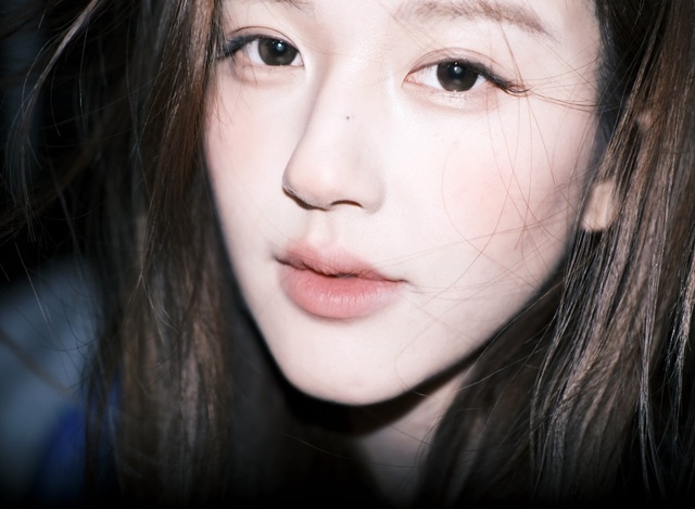 顶着一天录制依旧清透无暇的底妆,睫羽叫Lancome刷的挺翘规整,眼线在眼尾俏皮的下钩又翘起,布灵布灵的腮红从颧骨扫到眉尾,栗色的淡卷发凌乱的垂在胸前。