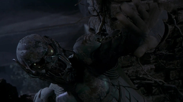 墙壁被拉下来砸中绿魔,将他埋了起来