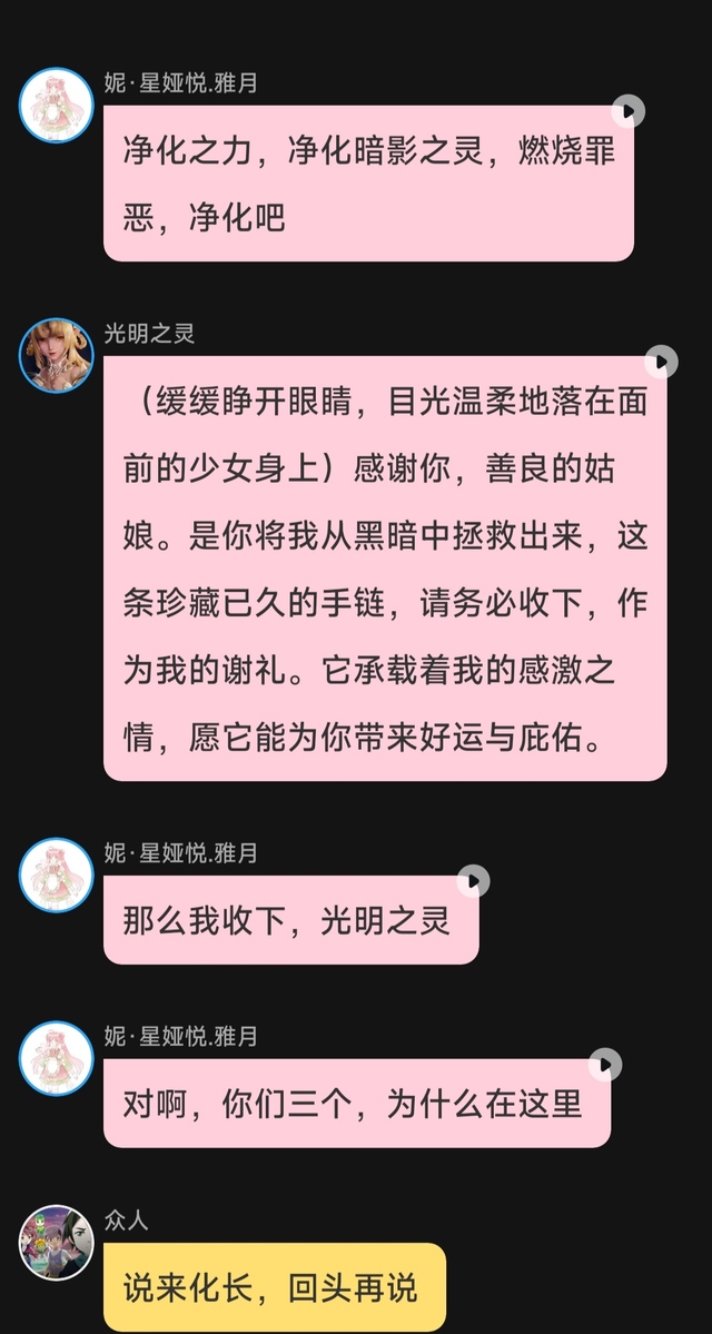 妮·星娅悦.雅月你们几人从人类世界启程,一路跨越至绿影岛,再穿越到我所在的这片时空。