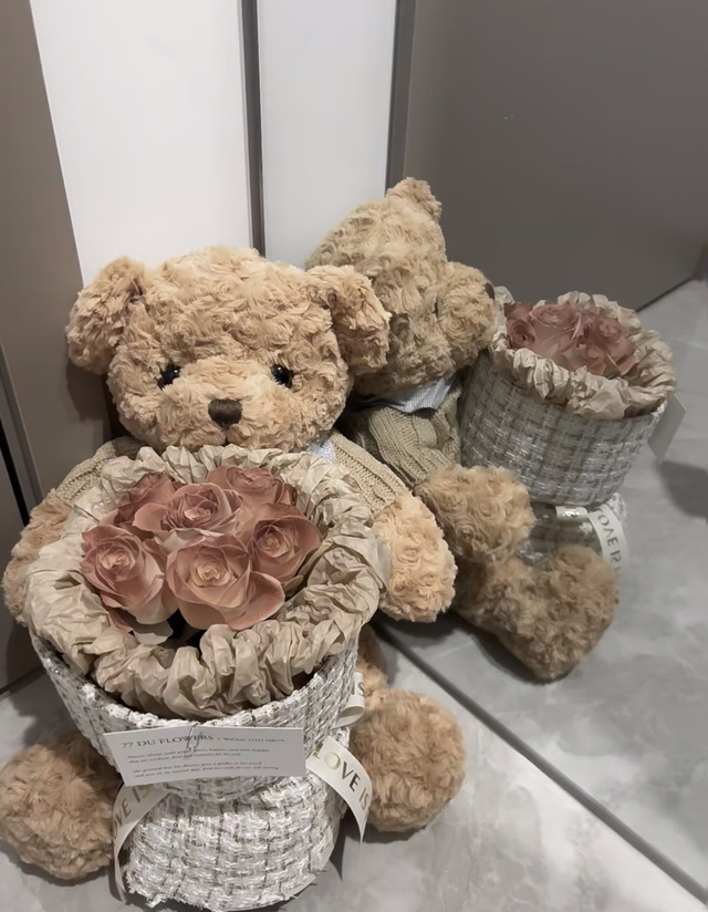 栾云平看了一眼,是一盒护喉糖和一个束熊熊花束。