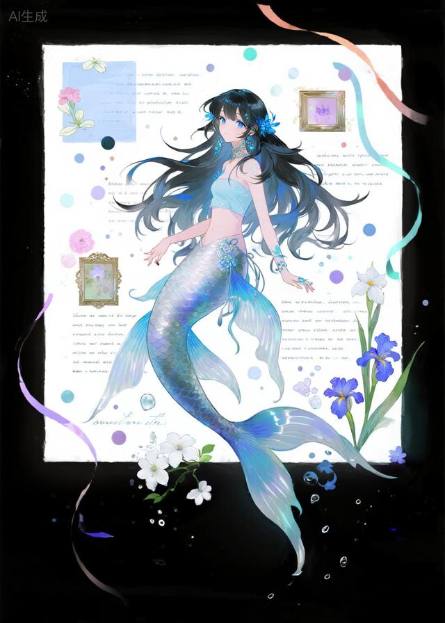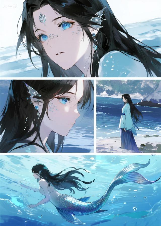 涟音,(年龄未知)人鱼鲛人族雌性,变成人形,身高是1米6,跳进水里变回鱼身颜色是波光粼粼,银蓝色,还会变换色彩,拥有一条梦幻般的大尾巴,在岸上是一头黑发,跳进水里黑发就会染上银蓝色。