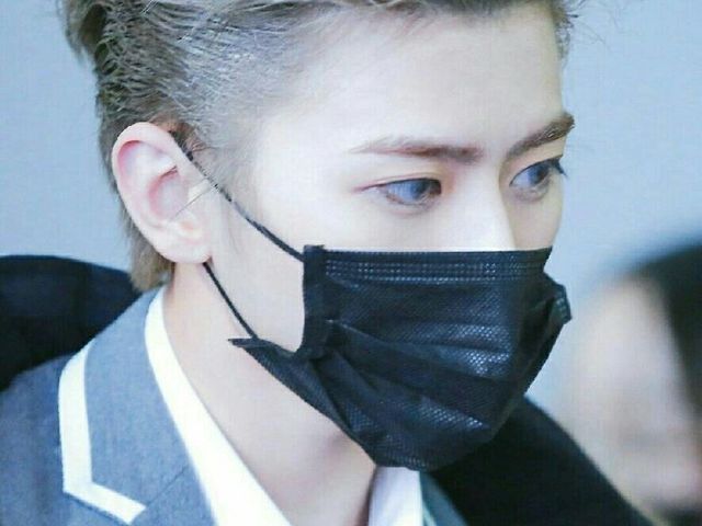 少年被黑口罩蒙住了脸,只留下一双清秀的眼睛,似乎发着光。