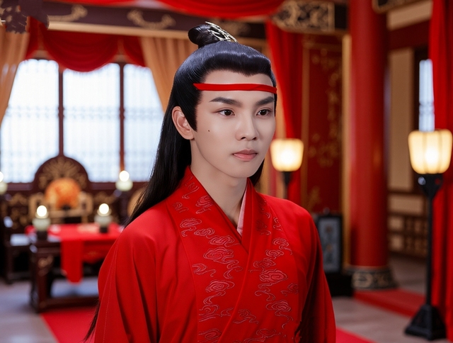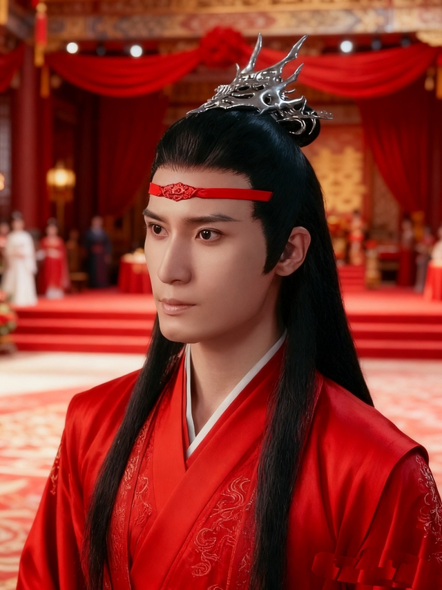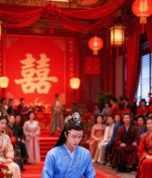 九十九盏琉璃灯骤亮,玉阶化作星河。蓝曦臣广袖翻飞而来,银丝流云与蓝思追腕间抹额相映,白鹤惊飞。琴阵奏响《凤求凰》,蓝曦臣垂眸看蓝思追系上云纹抹额。