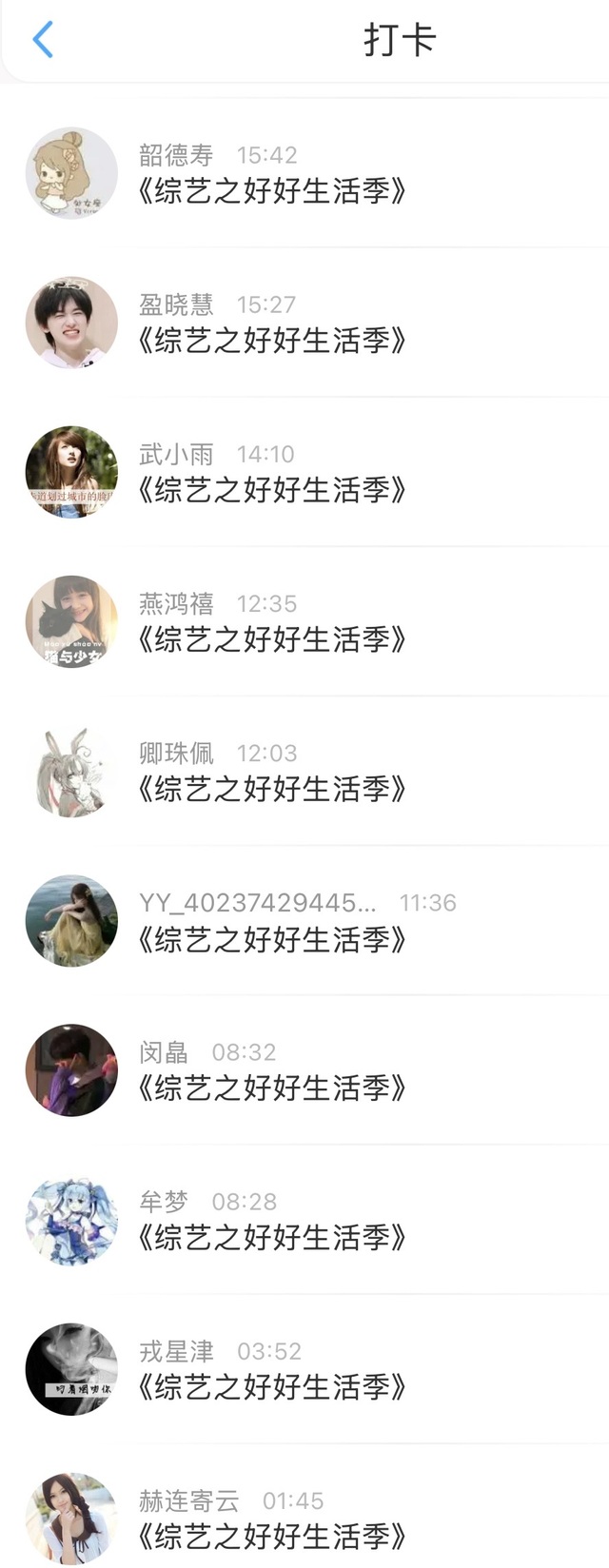 感谢赫连寄云、戎星津、牟梦、闵皛、YY、卿珠佩、燕鸿禧、武小雨、盈晓慧、韶德寿、幸寄真、喻菊、析长运、源乐童、杞梦易的打卡赞助播出