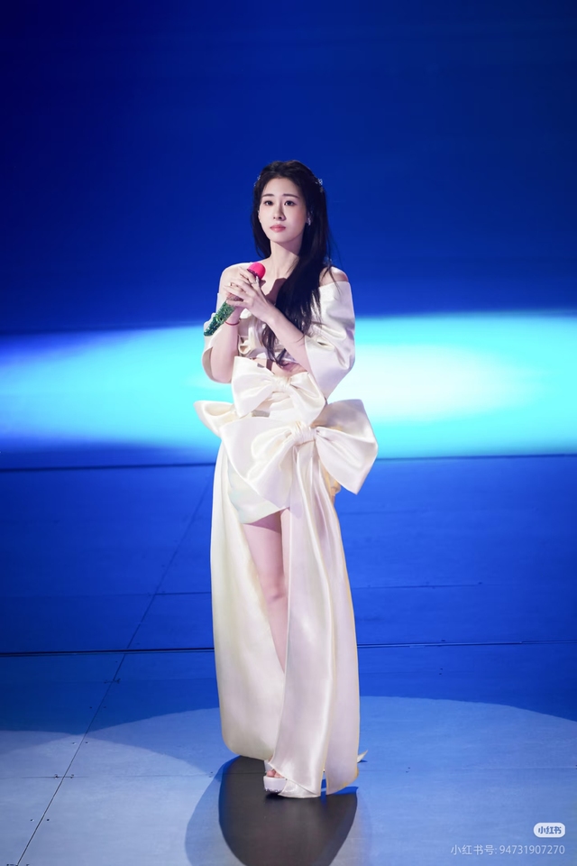 掌声中,穿着米白色长裙的张碧晨走了进来,她的长发微卷,气质温柔