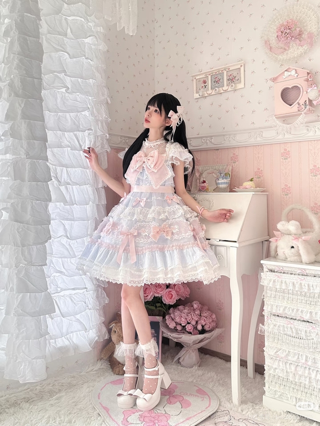 下一秒,穿着浅粉色蓬蓬裙的星星从舞台入口走了出来。她的浅粉紫色卷发被做成了双马尾,发尾带着自然的微卷,每根马尾上都系着一个白色的蝴蝶结,刘海处别着几颗小小的珍珠发饰。蓬蓬裙的裙摆上缀着细碎的亮片,走动时像撒了一把星光,脚上穿着一双白色的小皮鞋,鞋面上有一个毛茸茸的猫爪装饰,正好和她布偶与英短混血的兽型呼应