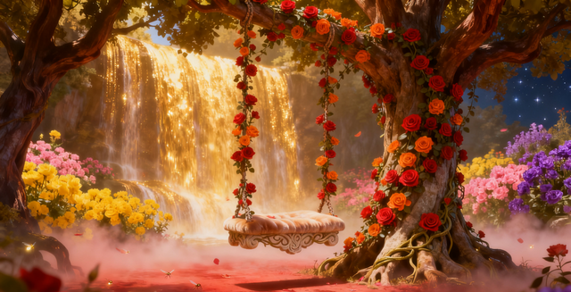 很快,他们到了一处瀑布之后的花林