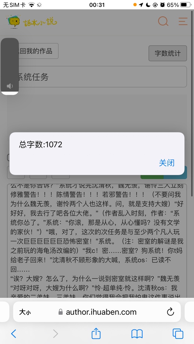 “c!算了,狗系统说!这次有是什么任务?”沈清秋,系统:“宿主,这次任务关系重大,主任务为让世界上四分之三的人相信你们的存在,次任务本系统会慢慢公布。”沈清秋:“好!好!好!知道了,你去告诉他们那一群“人”吧!”“为什么不是你告诉?”系统才说完沈清秋,魏无羡,谢怜三人立刻修雅警告!!!陈情警告!!!若邪警告!!!(不要问我为什么魏无羡,谢怜两个人也这样。问,就是支持大嫂)“好好好,我去行了吧各位大佬。”(作者乱入时刻,作者:“系统你怂了。”系统:“你滚,那是从心,从心懂吗?没有文学的家伙!”)“哦,对了,这次的次任务是与至少两个凡人玩一次巨巨巨巨巨巨恐怖密室!”系统。(注:密室的解谜是我之前玩的海龟汤改编的)“我c!密……密室?狗系统!你t妈给老子回来!”沈清秋不顾形象的大喊,系统os:已读不回……