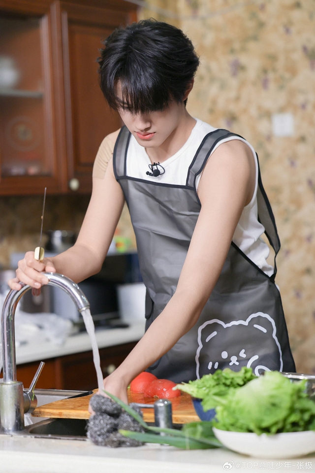 张极不知道什么时候回来的,正在厨房做饭