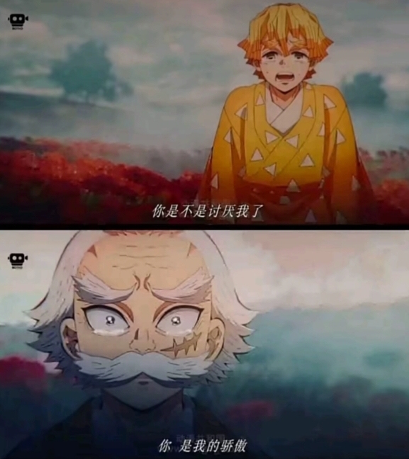 【虽然二人在彼岸相见,虽然善逸没有抱住他的爷爷,就在善逸认为爷爷讨厌自己时,他的爷爷说“你是我的骄傲”】