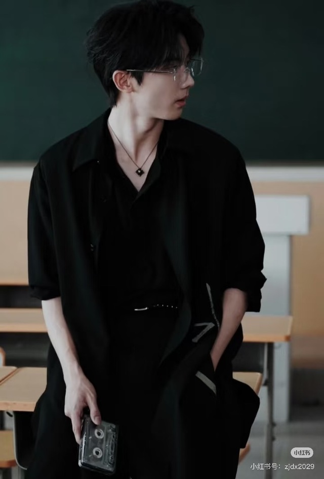 微卷的栗色长发随意扎在脑后,几缕碎发垂落,为他增添了几分落拓不羁的艺术家气质。