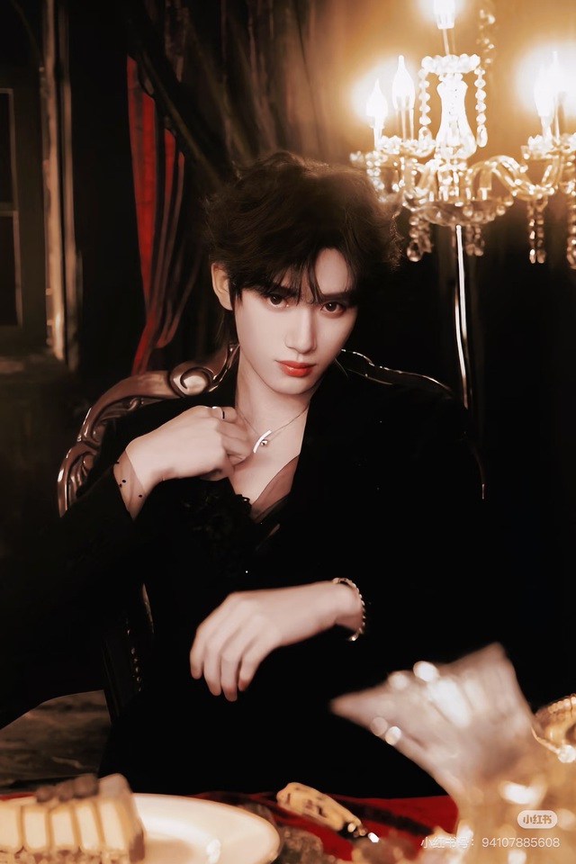 苏富比拍卖行顶级VIP室,香氛氤氲。丁程鑫深陷在柔软的沙发里,一双长腿随意交叠。他穿着看似低调实则量身定制的深紫色丝绒衬衫,领口微敞,露出精致的锁骨和一串细小的银色项链。
