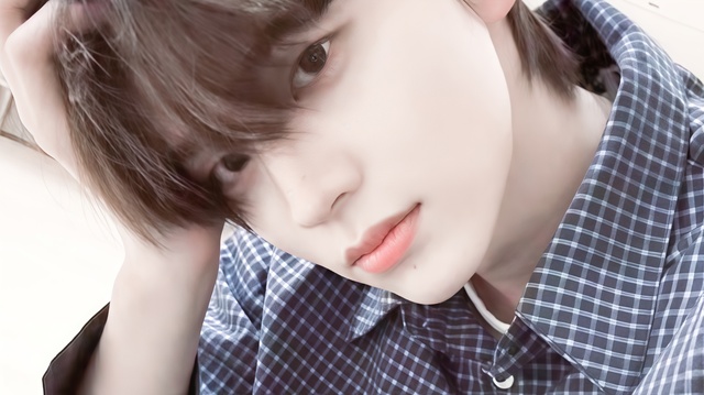 边伯贤托着脸颊,目光深邃而专注。