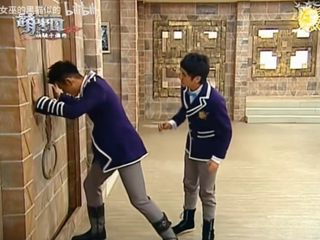烈焰坚尼这什么鬼教室门嘛,故意刁难人是不是啊!我告诉你喔!我坚尼也不是好惹的,信不信我一脚踹开你!